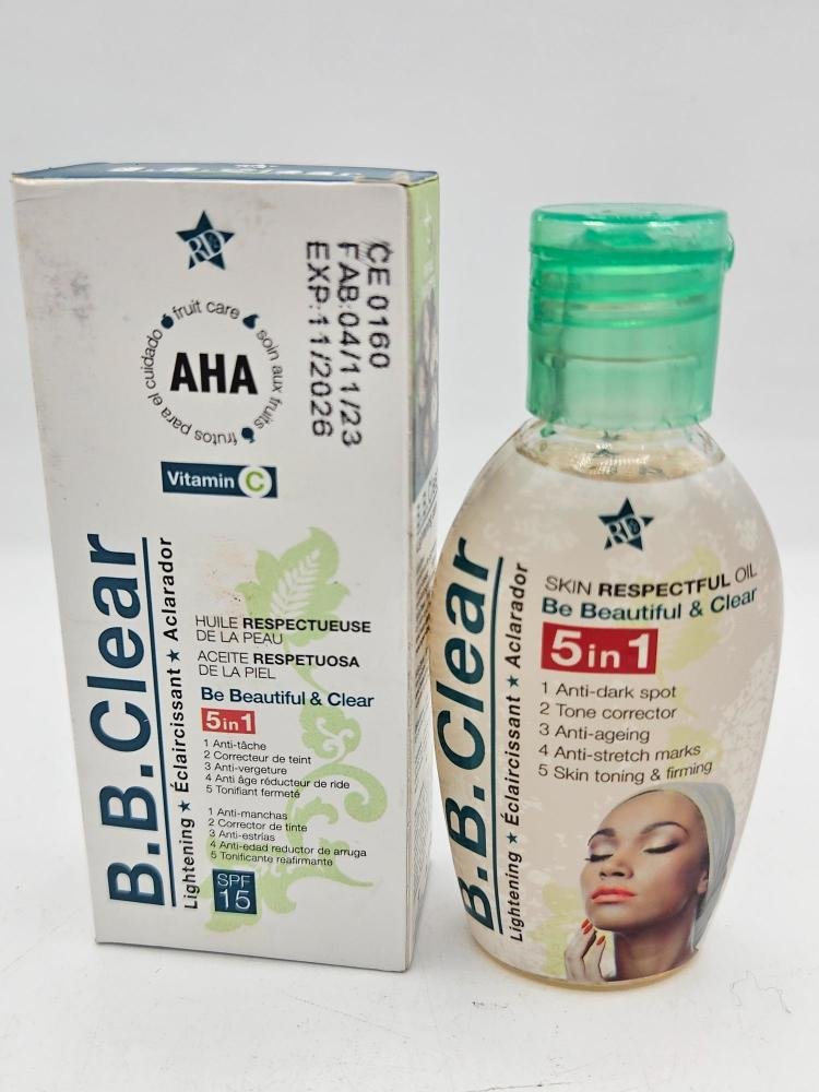 N’attendez plus : offrez à votre peau la correction ciblée qu’elle mérite avec l’huile éclaircissante B B Clear, votre secret pour un teint net, uni et naturellement sublime.