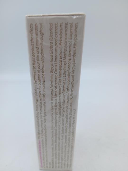 Crème visage éclaircissante et unifiante à base de beurre de karité, formulée en soin de nuit pour accompagner la peau face aux effets du temps.